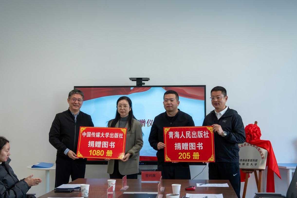 仪式上,孙海东、牟昱苍为部校共建马克思主义新闻观阅览室揭幕。张毓强、李兵兵分别向青海师范大学新闻学院捐赠图书1080册和205册。