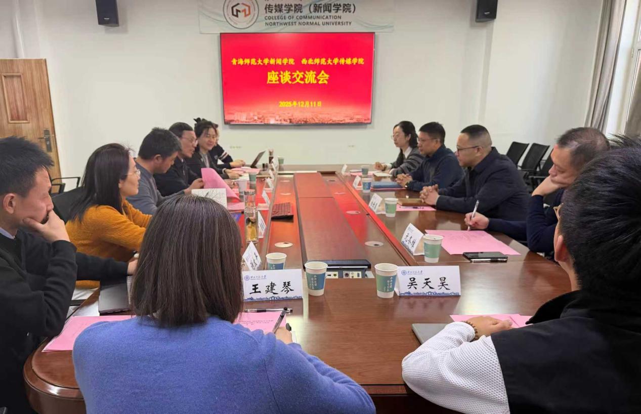 12月11日,中共青海省委宣传部副部长孙海东、省委宣传部新闻处处长相世恩、青海师范大学新闻学院院长才让卓玛、副教授元冬维一行赴西北师范大学传媒学院(新闻学院)座谈交流,一体推进部校共建与对口支援工作。西北师范大学传媒学院(新闻学院)银龄教授、中国大众文化学会会长汤恒,党委书记王晓燕,院长杨华,副院长赵丽瑾、石培龙,副书记席晓勇等参加了座谈交流会。会议由王晓燕主持。